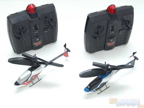 No surprises here -- put batteries in the transmitters, charge the helis, and you're ready to go. If a heli spins in one direction consistently when in flight, you can use trim buttons on the transmitters to correct this.