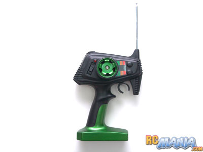 The controller is pistol-style where you hold it like a gun in one hand, the "trigger" controls throttle, and a wheel is there for steering. The throttle is digital proportional so you can go very slow or full speed, or a number of steps in between for better control. The steering wheel, hoever, is not proportional, only allowing you to go full left or full right.