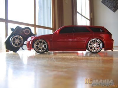 The body is very detailed, and is modeled after a Dodge Magnum. It is made of a strong lightweight plastic, and is well prepared to take the bumps and bruises it will need to endure during the mistakes made by an entry level driver. The wheels are modeled after "spinners," and they work fairly well for how small they are. The car also has numerous lights placed around the vehicle under the body, simulating a similar effct comparable to that of ground effects on a real car. All these qualities make this vehicle very visually desirable.