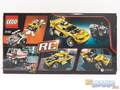 If there's one group of hobbyists out there that's bigger & stronger than the RC Maniacs, it's the Lego-maniacs! Around the world, the number of active Lego fans of truly all ages is absolutely awe-inspiring. Over the years, the Lego company has made a number of radio- or infrared remote-controlled vehicles for both Lego fans who want to actually race their their car-like creations around. The Track Turbo kit is one of the latest, and if you look at the back of the box, you see that it actually lets you build the car in three distinctly different ways.