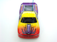 With that out of the way, let's look at this truck. First off, I have to admit that I don't like the style of this truck's body. It looks cheap and fake. In fact, I don't think I've seen any supposedly inferior "toy-class" RC that doesn't look better than the Spirit. The body doesn't come attached to the chassis, and this is because you need to put your own stickers on. This is kind of good because I can pick & choose which ones I want to use or leave off. They even give you two completely different options for the grille and headlights, so that's cool. Attaching the body is just a matter of sliding it over four posts that stick through pre-drilled holes, and then putting on four little metal things called body clips. Simple enough.