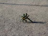 The first attempt at running the Shell Shocker was done indoors. That didn't work out too well. This beast is entirely too large and too powerful to use inside -- I'm certain it could damage almost anything it hit. (Hear that, parents? Don't buy a Shell Shocker for your kids to use in the house! You've been warned!) Next up came a wide open dirt & gravel field, where we were truly able to "release the beast." Controlling it takes some practice. Each of your thumbs goes on a control pad on the transmitter, controlling the wheel/leg/whatever you want to call it on that side of the vehicle. To go forward, you push forward on both pads. To go left, you push forward on the right pad. To spin in place, push one pad forward and the other one backwards. Transformation is controlled by paddles on the bottom side of the transmitter, which you push with either index or middle finger; one side transforms it into a ball and the other takes it back. You can stop at any point during the transformation, though, leaving it in any one of an infinite number of in-between modes.