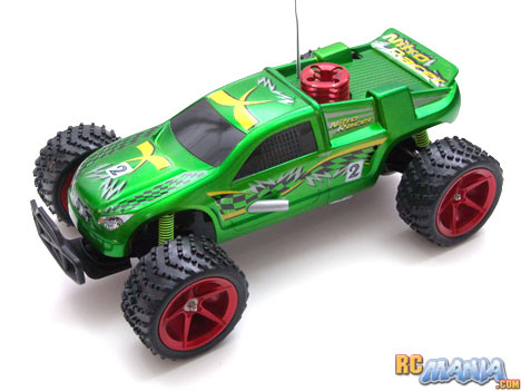 When I first saw this truck I thought, "Nitro? No way." It has nitro in the name and it even has what look like an exhaust tip and a heatsink engine head (the red thing on the back) from a hobby-level nitro (kinda like gas) powered RC, but that's all for looks. This is a safe, normal, electric vehicle.
