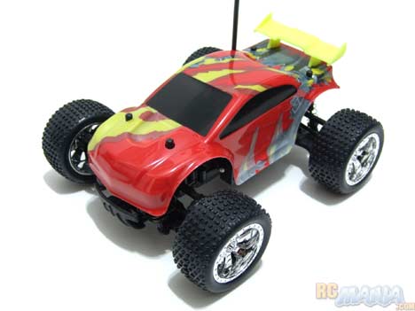 Though the vehicle looks complicated, it's not hard to get it ready to run. Batteries are included and easy to install. Hiding behind the holographic silver lining of the box (that includes the ramp for jumping) is an instruction manual and a set of stickers you can use to decorate the body. It's important that you put on the antenna tube, and attach the body with four small metal clips. Extra body clips are included in case you lose one or two.