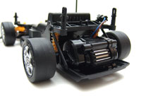 The chassis, it is a good design. There is independent spring suspension in the front, and a "live axle" in the back. The motor and battery are mounted near to the ground, giving the a low center of gravity. This is most important for agile and consistent handling on the street!